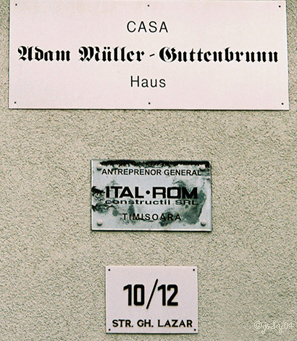 Adam Müller-Guttenbrunn, poet and theatrical director, born 1852 in Guttenbrunn (Zabrani), Banat, died in 1923 in Vienna. (well-known prose-writer of the Swabian ethnic community in the Banat)
